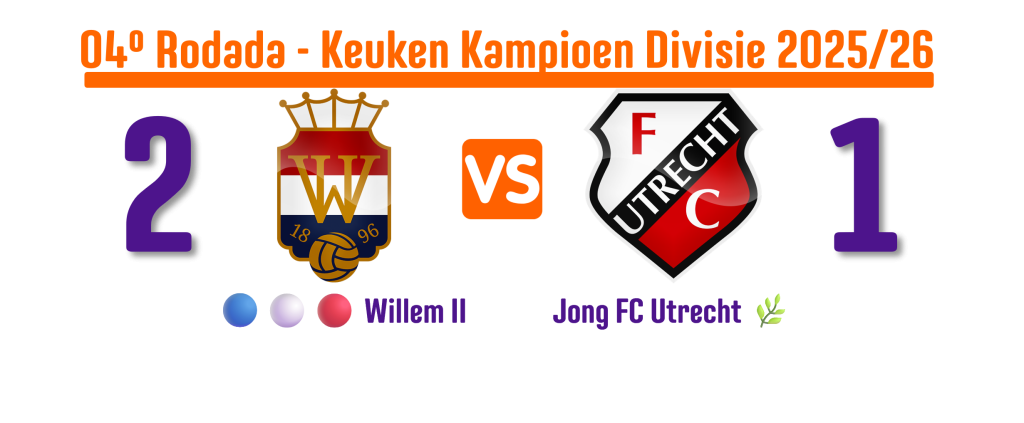 🔵⚪🔴 2×1: Nos acréscimos do segundo tempo, o Willem II encontrou o gol da vitória. A bola foi levantada na grande área do Jong FC Utrecht. Nick Doodeman chegou na linha de fundo e tocou rasteiro para o meio da pequena área. Thomas Verheydt se esticou completamente para colocar o pé na bola e estufar as redes de Kevin Gadellaa, levando a torcida da casa ao delírio.