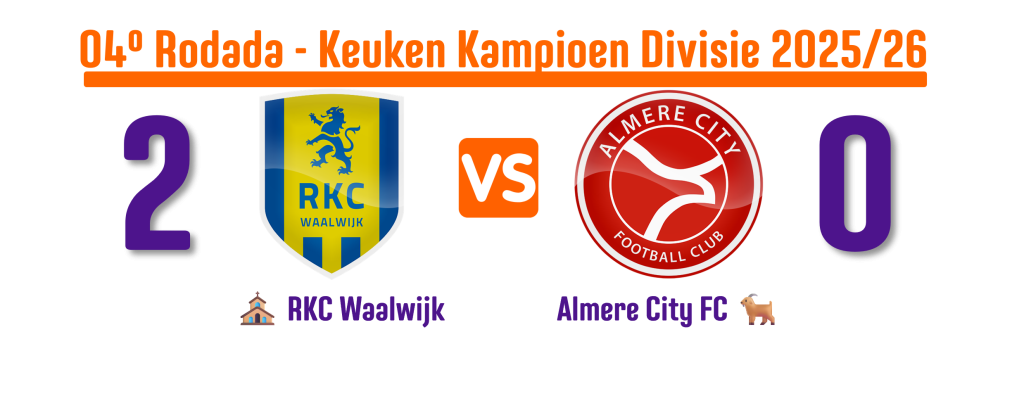 No Mandemakers Stadion, em Waalwijk, no sul da Holanda, o RKC Waalwijk recebeu a visita do Almere City FC. Os comandados de Sander Duits venceram os Zwarte Schapen por 2 a 0, graças aos gols de Daouda Weidmann e Roy Kuijpers.